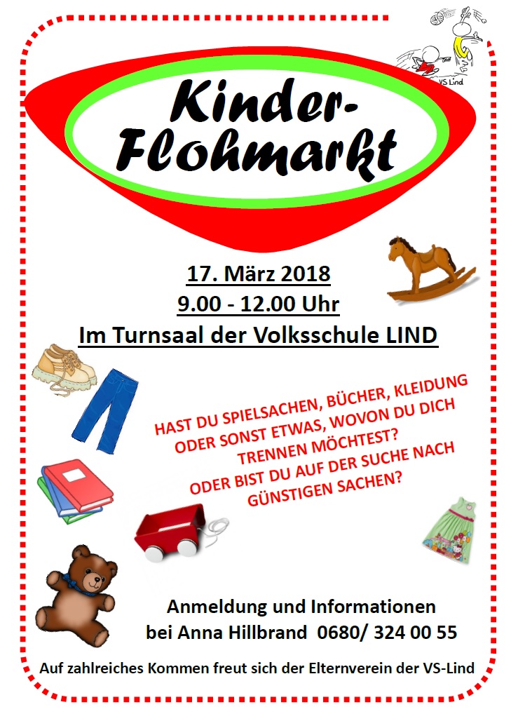 Hast du Spielsachen, Bücher, Kleidung oder sonst etwas, wovon du dich trennen möchtest? Oder bist du auf der Suche nach günstigen Sachen? Beim Kinderflohmarkt in der VS Lind bist du genau richtig!