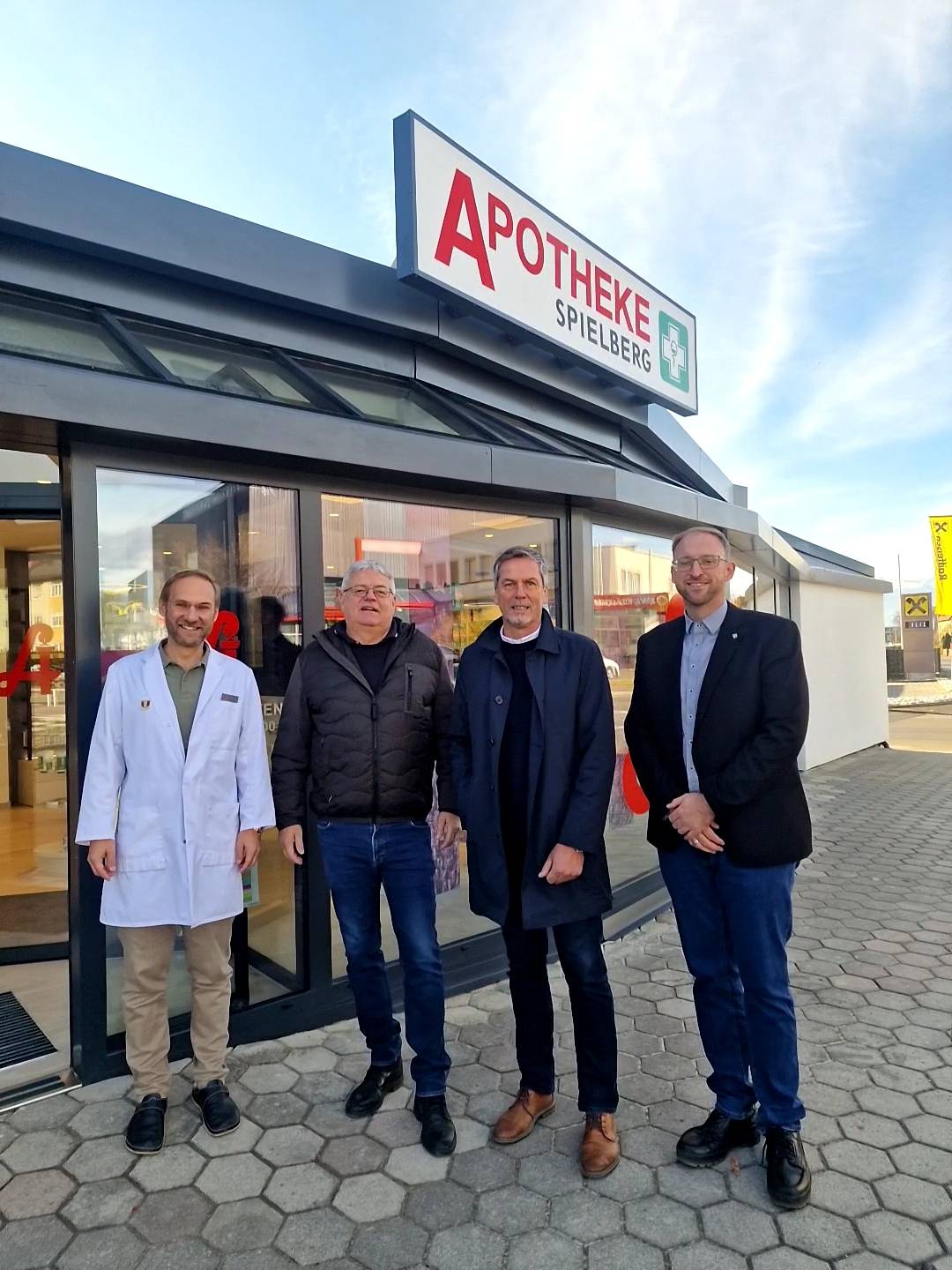 Wir freuen uns außerordentlich über die Neueröffnung der „Apotheke Spielberg“ in der Triester Straße 13. In den modernisierten Räumen der ehemaligen Bäckerei Schaffer, gegenüber der Raiffeisenbank, hat Spielbergs Apotheker Dr. Christoph Mayr, knapp drei Jahre nach Übernahme der Apotheke, mit seinem engagierten Team nun ein neues Zuhause gefunden. Mit Vorfreude blicken wir auch auf die Neueröffnung der Praxis von Allgemeinmediziner Dr. Alois Pertl am 1. Dezember unter demselben Dach.