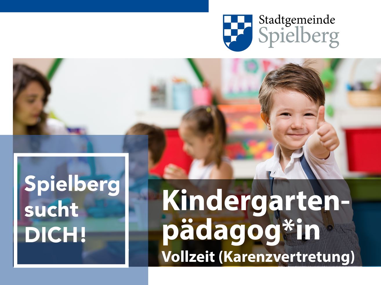 Die Stadtgemeinde Spielberg sucht auch Verstärkung für unser engagiertes Kindergartenteam! Jetzt bewerben: Alle Details rund um die ausgeschriebene Stelle gibt es hier.
