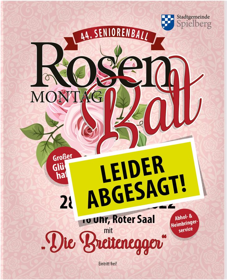 wir haben bis zuletzt gehofft, unsere beliebten Spielberger Faschingsveranstaltungen in diesem Jahr durchführen zu können. Wir bedauern sehr, dass der „Große Ball der Kleinen“ (27.2.) sowie der „Rosenmontagball“ (28.2.) aufgrund der aktuellen Entwicklungen auch heuer leider abgesagt werden müssen.