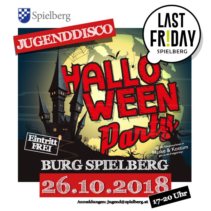 Eine gruselige Jugenddisco erwartet alle Kinder bei der Oktoberveranstaltung von Last Friday. Anlässlich von Halloween wird "Die Burg" zur Partylocation und wir freuen uns bereits jetzt auf viele kostümierte Besucher.