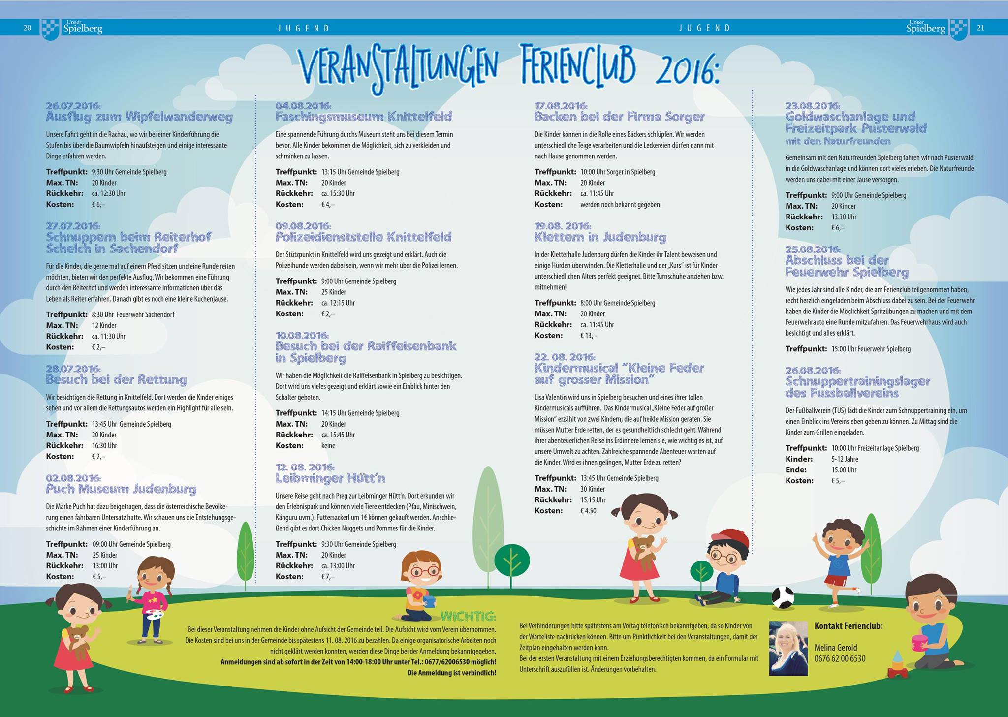 Mit dem Ferienclub 2016 gibt es sicherlich keine langweiligen Ferientage mehr. Anmeldungen sind ab dem 04.07. 2016 in der Zeit von 14:00-18:00 Uhr unter Tel.: 0677/62006530 möglich!