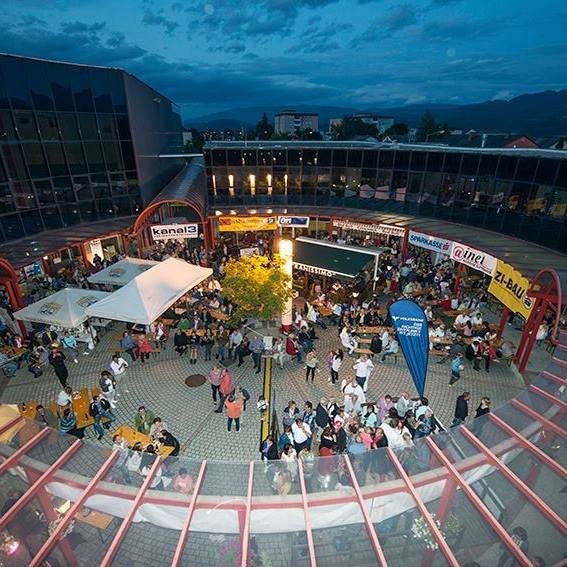 Noch ist es recht ruhig im Rondo des Wirtschaftszentrums Spielberg. Ab Juni wird der Innenhof allerdings mit einem Public Viewing Bereich zur großen Fanarena für das Fußballspektakel 2016 aufblühen und alle Spiele live und in HD erlebbar machen.