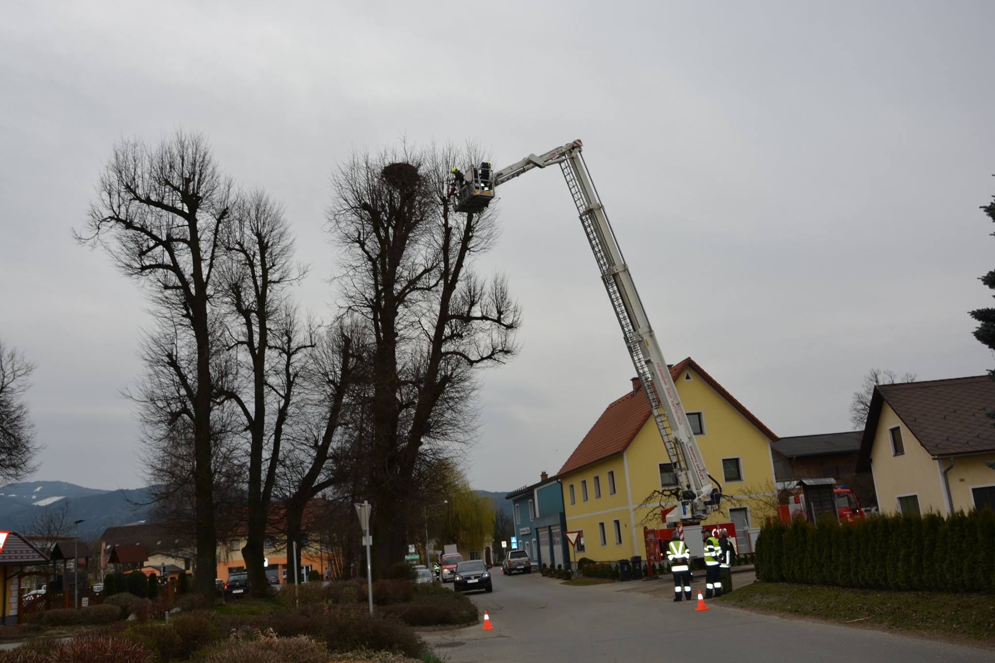 Noch ist das Warten auf die Rückkehr der Störche nicht vorbei. Damit die gefiederten Freunde das Nest aber wieder gut nutzen können, wurde heute eine kleine Hilfestellung geleistet und das Nest ausgeschnitten und gesäubert. Die spannende Aktion konnte am Vormittag durch Mithilfe der Feuerwehr Knittelfeld rasch erledigt werden.
