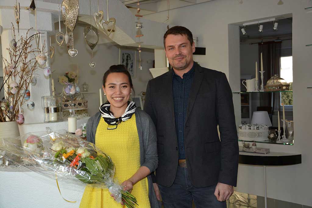 Gemeinderat Mario Bräuer überbrachte zur Eröffnung im Namen der Gemeinde einen Blumengruß und konnte das vielfältige Angebot bewundern.